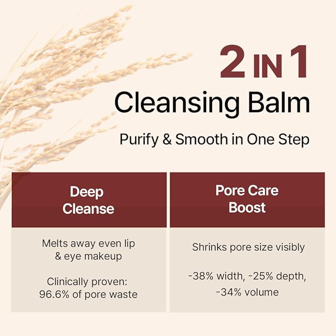 - Deep Cleansing Balm with Rice & Peptides Melt away makeup, sunscreen, and impurities with our gentle Rice Pepta Cleansing Balm. Enriched with rice bran oil and peptides, it cleanses without stripping, perfect for sensitive skin types