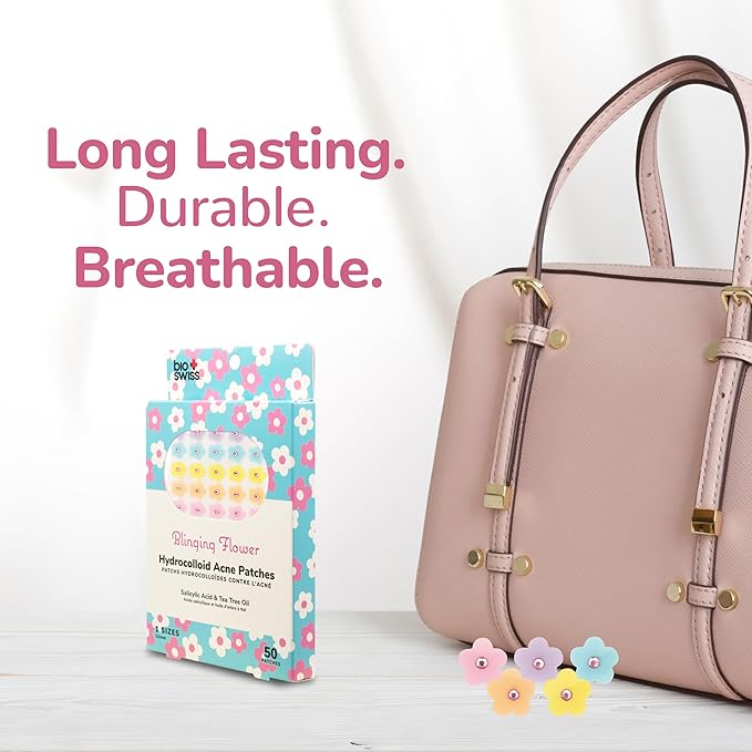 BioSwiss Pimple Patches, Blinging Flowers Patch for Zits and Blemishes, Hydrocolloid Spot Stickers for Face and Skin, 50 Count