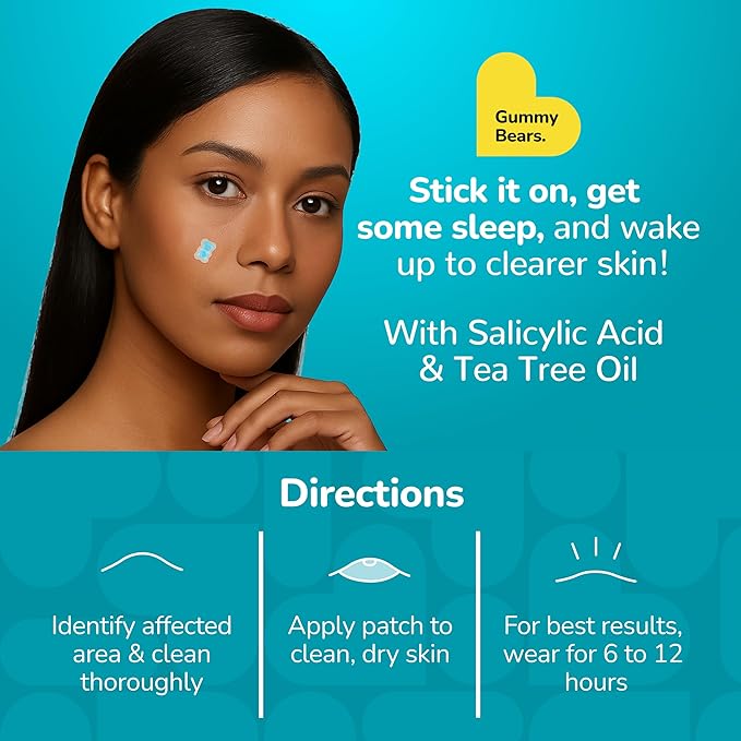- GUMMY BEARS ACNE PATCHES: Tackle zits and blemishes effectively and achieve clear and smooth skin with our Gummy Bears Acne Patches. Our patches for pimples come in 6 funny and cute assorted styles