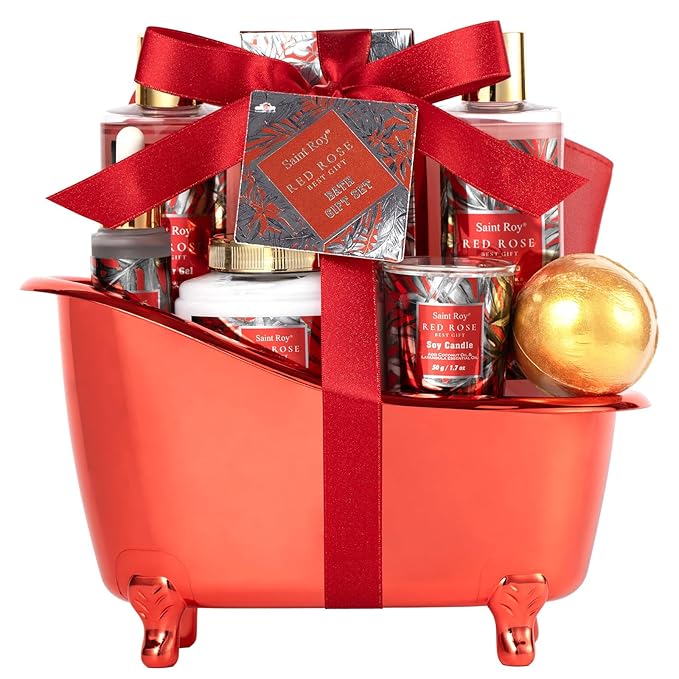Christmas Spa Gift Set For Women, Birthday Gifts for Her, Spa Gift Basket for Women, Red Rose Bath and Body in Floral Scents Bath Kits, Home Spa Gift Basket, Bath Spa Kit for Mothers day Bath Lotion