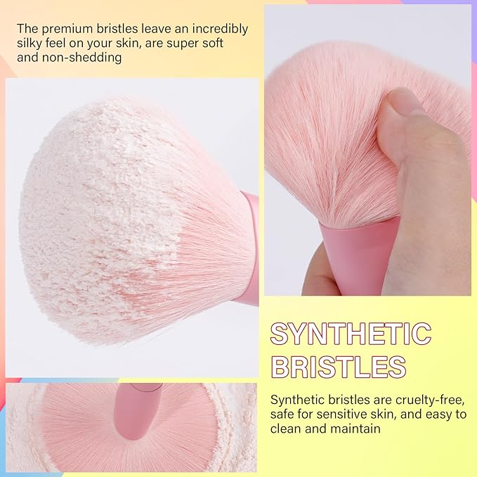 - Soft and Luxurious Bristles: Made of synthetic fibers, providing smooth, flawless applications, ensuring even coverage without streaks or harsh lines. Soft hair will not irritate the skin. Suitable for all skin types—even sensitive skin. Makeup brushes help you achieve a natural face and eye look with your favorite liquid, cream, or powder foundation, concealer, eyeshadow, setting powder, liner, blush, bronzer, or contour.