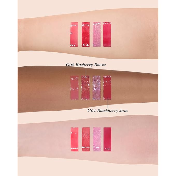 - Comprehensive Beauty Collection:Discover a luxurious assortment including: Lip Gloss (G02 Raspberry Booze + G04 Blackberry Jam) ×2, Blush (G01 Romantic Blossom + G02 Little Cranberry) ×2, Handheld Mirror,Blush Brush,Hair Clip,All beautifully arranged in an elegant gift box except for the handheld mirror