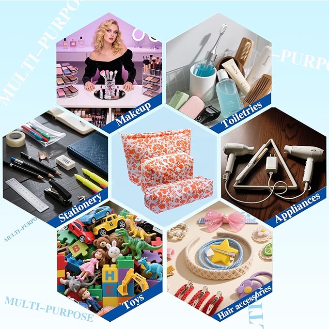 - 【Multi-color pattern design】: This 3piece quilted makeup bag features a multi-color floral pattern design, giving it a fashionable look that makes it a stylish accessory. It is suitable for both everyday use and special occasions, allowing you to express your personal style.
