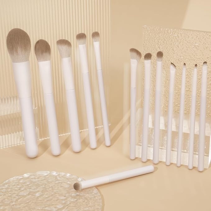 Makeup Brush Set Professional 13pcs,Premium Synthetic Powder Foundation Contour Blush Concealer Eyeshadow Blending Liner Make Up Brushes Kit(Milky B521)