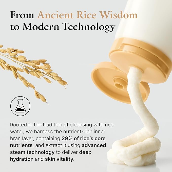 - RICE-DOUGH CLEANSER & MASK 2-IN-1: Creamy rice-dough texture works as both a daily face wash and a nourishing mask, gently removing impurities while leaving skin soft and hydrated.