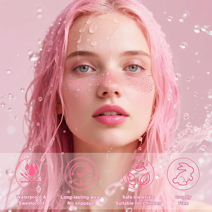 - LONG-LASTING & WATERPROOF - Keep your radiant look from day to night with LemonSac's waterproof glitter freckles face tattoo. Designed to stay vibrant and intact, these freckle tattoos will withstand a full day of activities—whether you're braving the rain, hitting the pool, or dancing at a music festival. No need to worry about reapplying; our freckle makeup is made to last through all your adventures.