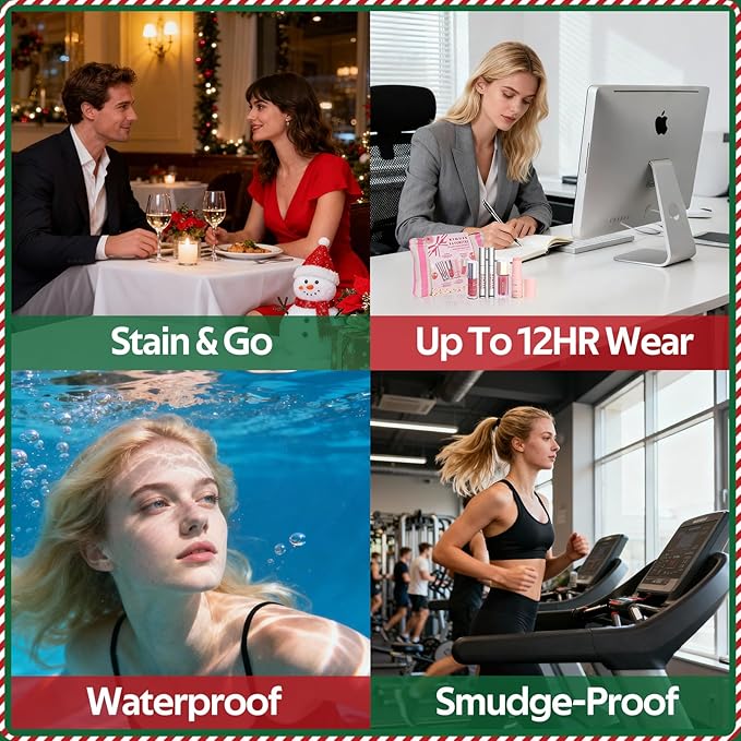 - Quick & Effortless Holiday Beauty:Perfect for the busy time, this user-friendly christmas make up collection lets you create flawless looks in minutes. The easy-blend cream blush, long lasting Lip Stain and one-swipe miracle balm Stick allow for seamless touch-ups between parties, travel, or events—transitioning smoothly from daytime elegance to evening glamour