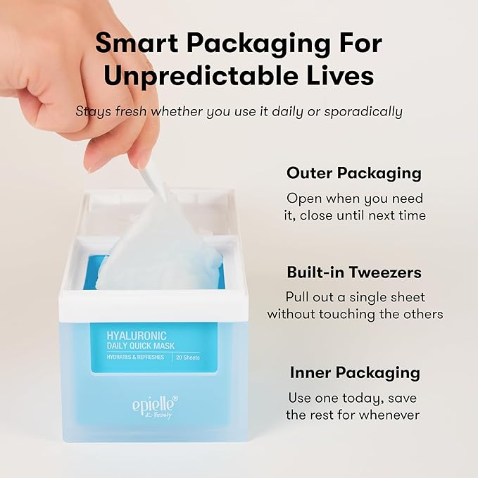 - FRESH FACIAL MASKS FOR MONTHS, NOT DAYS – Smart packaging keeps each Korean beauty face mask potent whether you use these sheet masks for face tomorrow or next month. Resealable lid and built-in tweezers mean grab-and-go hydration without waste. Face masks skincare built for sporadic use and unpredictable korean skin care schedules.