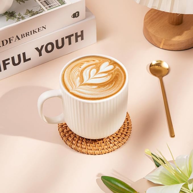 - 【Cozy Moments, One Cup at a Time】Every sip brings comfort with this elegant ceramic mug, featuring a smooth glaze and ergonomic handle for a cozy grip. Paired with a bamboo coaster and stainless steel spoon, it’s perfect for tea, coffee, or cocoa. Durable, heat-resistant, and beautifully designed — the perfect companion for slow mornings, quiet evenings, or recovery days.