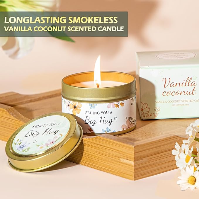 - 【Relaxing Spa Gifts Basket】The vanilla coconut candle, made from natural soy wax, provides a clean, even burn for up to 20 hours. Combined with the oatmeal handmade soap, this spa-inspired duo soothes the senses, calms the mind, and melts away stress. A thoughtful self-care and relaxation gift for women to enjoy peaceful, rejuvenating moments in the comfort of home.