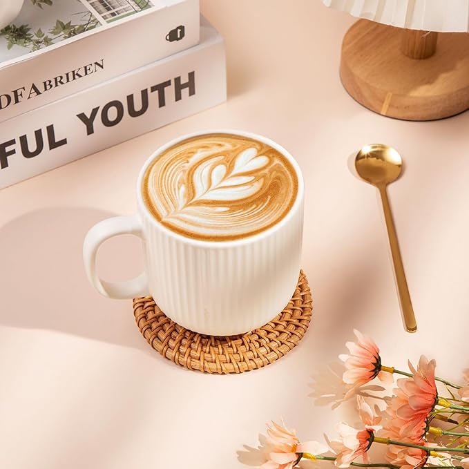 - 【Cozy Moments, One Cup at a Time】Every sip brings comfort with this elegant ceramic mug, featuring a smooth glaze and ergonomic handle for a cozy grip. Paired with a bamboo coaster and stainless steel spoon, it’s perfect for tea, coffee, or cocoa. Durable, heat-resistant, and beautifully designed — the perfect companion for slow mornings, quiet evenings, or recovery days.