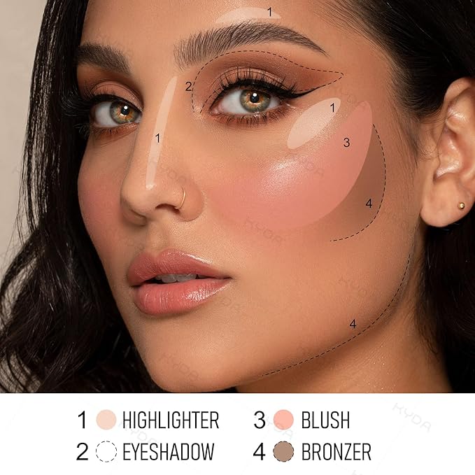 KYDA Baked Makeup Palette, Full Size Baked Palette Compact Includes Bronzer, Blush, Highlighters and 4 Eyeshadows, Travel-Friendly Baking Makeup, Highly Pigmented, Long-Wearing