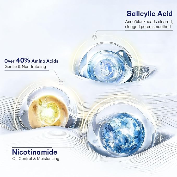 - SKIN-NOURISHING TRANSPARENT INGREDIENTS:Men’s face wash—transparent, skin-friendly, with Salicylic Acid (unclogs pores), Amino Acids (skin barrier), 10% Glycerin (moisture, no tightness) & seaweed extracts (balancing minerals). Daily-use suitable.