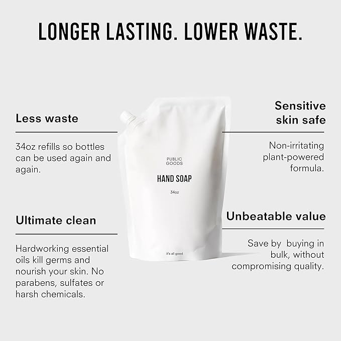 Public Goods Hand Soap | Cleansing Soap for Kitchen & Bathroom | Made with Natural Essential Oils | Paraben & Sulfate Free | Vegan Friendly | 34 Fl Oz Refill (Pack of 2)