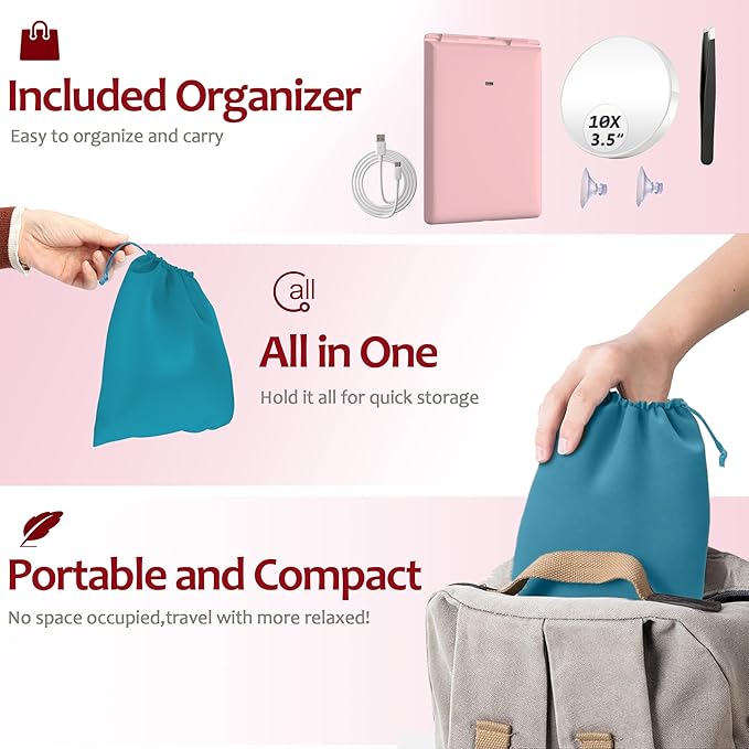 - LOOK YOUR BEST ANYWHERE: Choose our light up makeup mirror, It makes for an excellent present for any occasion. The ultra-thin and ultra-light design and non-distorting mirror will become an indispensable part of your makeup activities in life and travel. Enjoy the perfect makeup experience with our travel led makeup mirror!