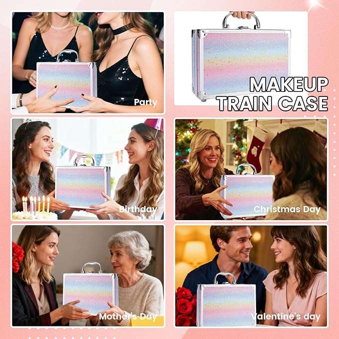 - Multi-Functional and Reusable Case:This durable and reusable suitcase can be reused as a cosmetics storage box. It can easily hold cosmetics, makeup tools, skin care products. Whether it is for carrying during travel or organizing and storing at home, it provides great convenience.It's easy to touch up makeup anytime and anywhere.