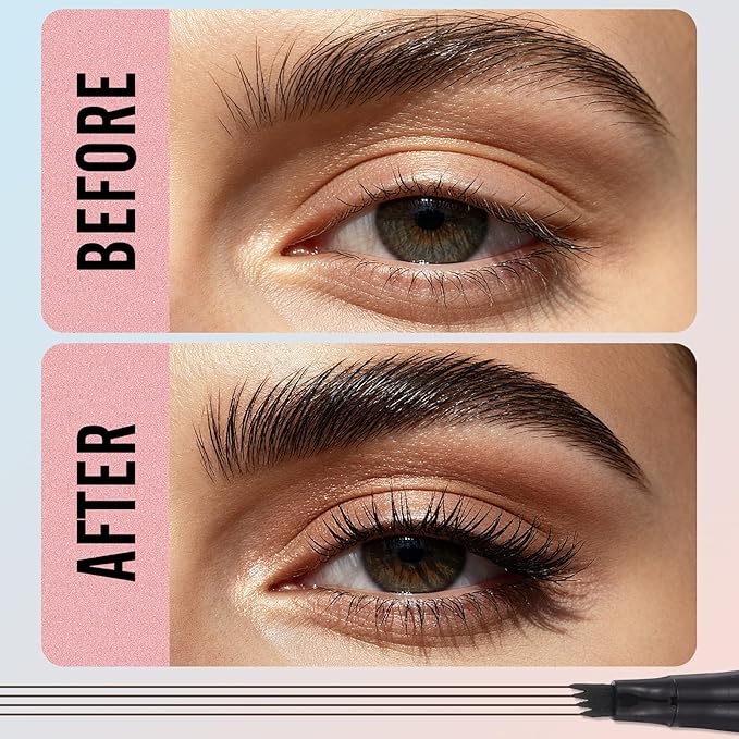 - 2 IN 1 Eyebrow Pen:The microblade eyebrow pen design quickly fills in sparse brows while precisely sculpting natural-looking, realistic eyebrows.The clear eyebrow gel on the other end delivers a natural finish that's waterproof and sweat-resistant, ensuring long-lasting brow makeup.